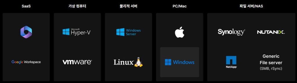 모든 디지털 데이터를 하나의 플랫폼으로 통합하고 백업할 수 있습니다. 랜섬웨어 공격 및 기타 위협으로부터 보호하고, 중요한 데이터가 실수로 삭제되거나 손실된 경우 신속하게 복구하여 비즈니스 연속성을 보장할 수 있습니다.